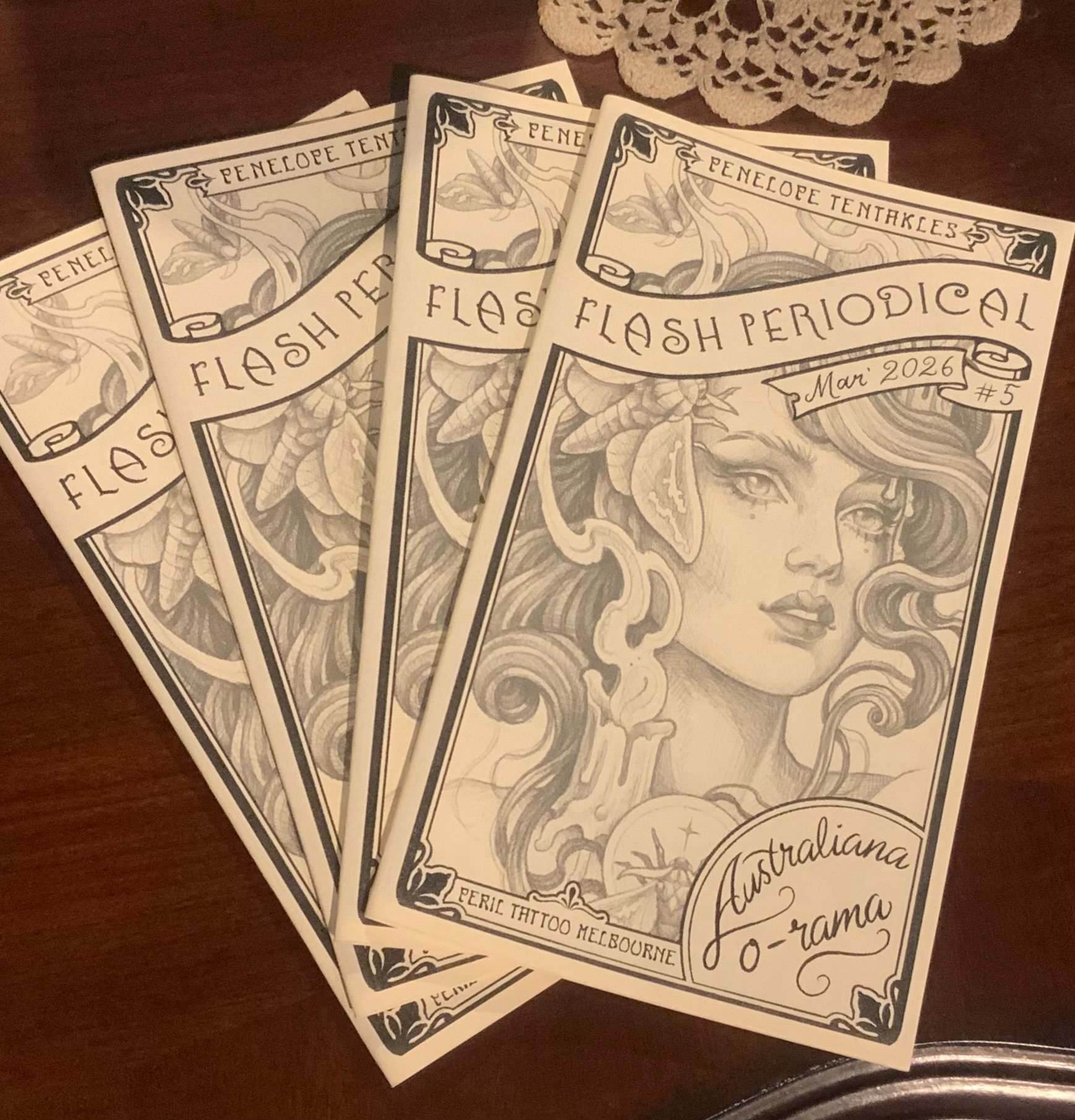 Get the March 2026 issue of the Flash Periodical, only $1.99! Contains 25+ new designs available to book in, this issues theme is Australiana-o-rama! Nothin but native plants, animals and local weirdness.